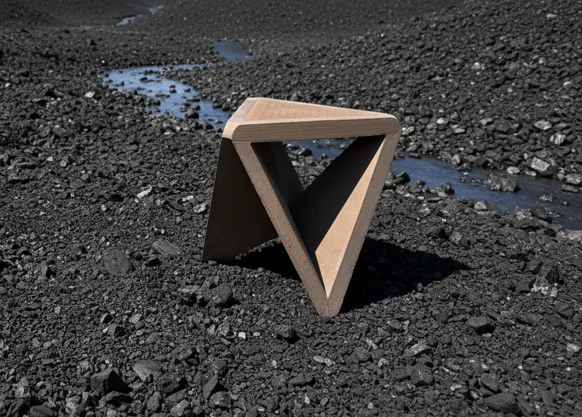 Der Coalymer Stuhl verbindet generatives Design, 3D-Druck und eine innovative Materialmischung aus Geopolymer und Pflanzenkohle. So entsteht ein Möbelstück, das mehr CO₂ speichert als bei seiner Herstellung freigesetzt wird – leicht, robust und klimafreundlich.