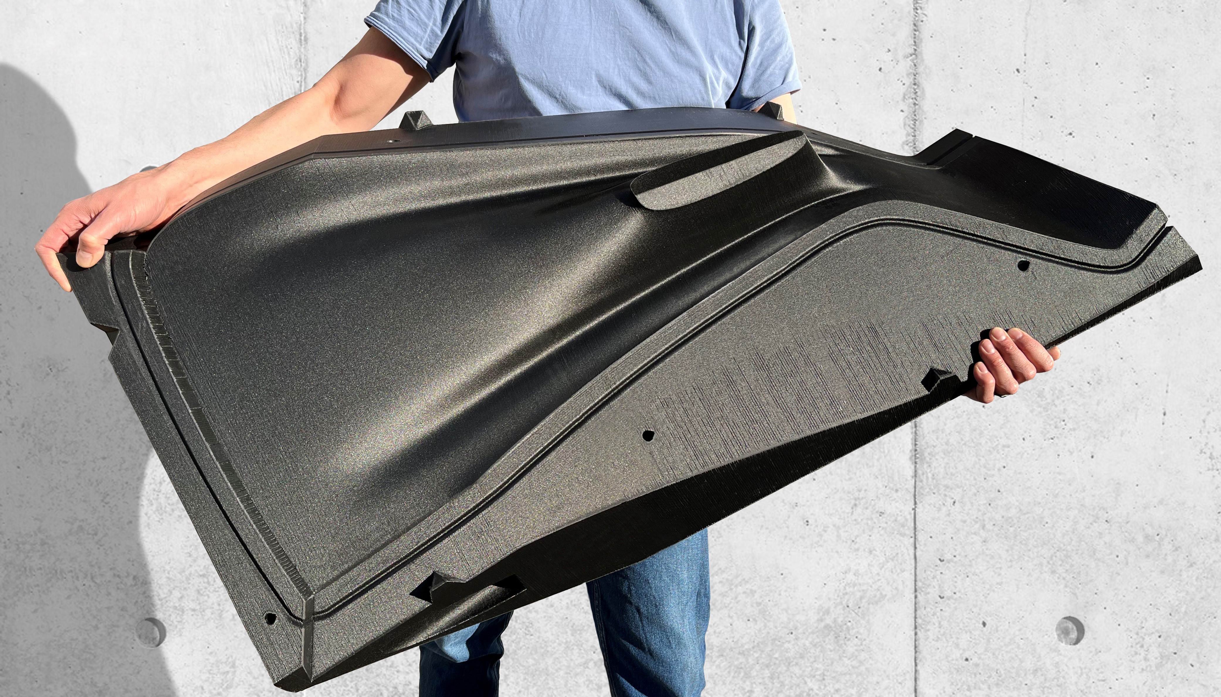Bei speziellen Anwendungen – etwa den 3D-gedruckten Schalungen von NDC – werden die Oberflächen zusätzlich mit einem eigens entwickelten, abziehbaren Coating veredelt. Diese Schicht sorgt für eine glatte, widerstandsfähige Oberfläche und schützt die Schalung zuverlässig vor dem aggressiven Beton. Gleichzeitig bleibt das Material sortenrein und vollständig rezyklierbar. So sind mehrere Abgüsse mit präzisen, makellos glatten Betonoberflächen möglich.