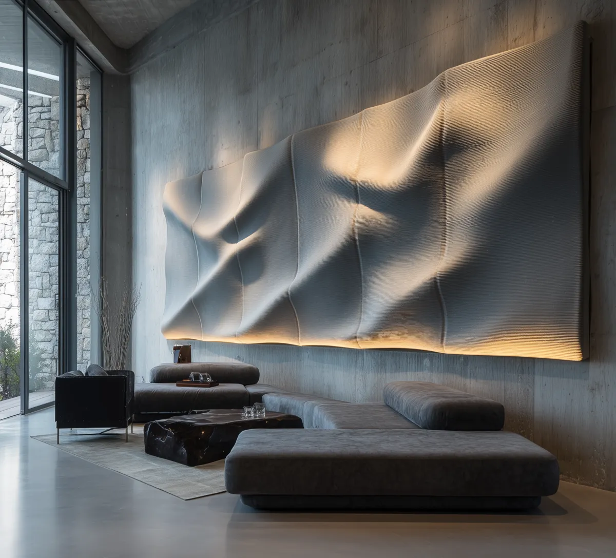 Ob Büro, Hotel oder Wohnraum – die 3D-gedruckten Wandmodule vereinen Akustik, Design und Nachhaltigkeit zu einer neuen Dimension der Raumgestaltung.
