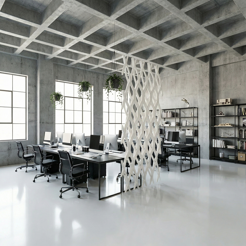 Unsere Raumteiler bieten eine elegante Lösung, um offene Bereiche zu strukturieren, Privatsphäre zu schaffen und Identität sichtbar zu inszenieren –